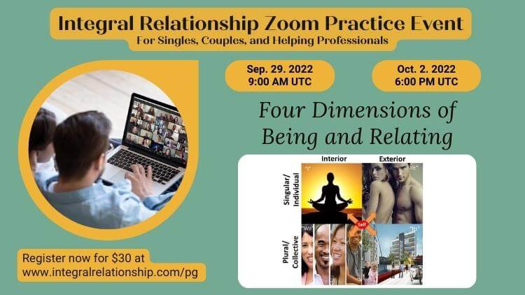 Learn and practice how to build a solid foundation for a healthy sustainable Integral Love Relationship. Realize that four essential dimensions of your human being and relating come into intimate contact with each other when you fall in love and enter a committed romantic relationship, regardless of whether or not you and your partner are consciously aware of them.