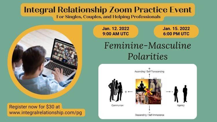 Balance and harmonize healthy masculine agency/ascending and feminine communion/descending polarities in all four dimensions of your being and relating in order to co-create attraction, synergy, and flow in your love relationships.